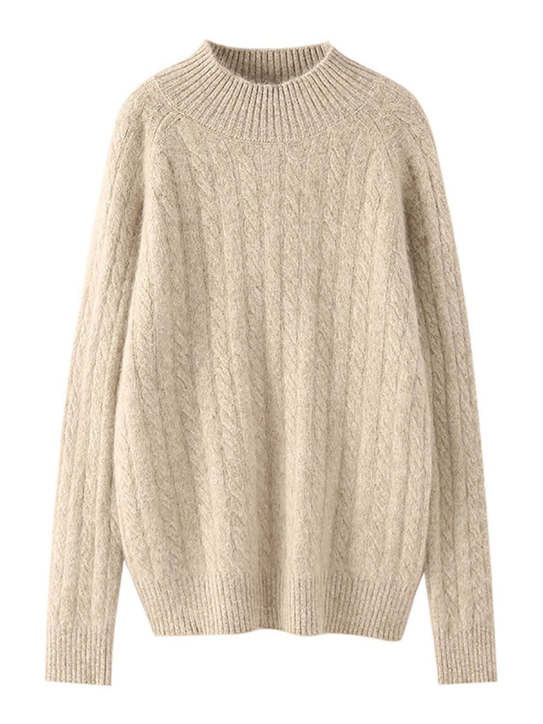 Women Autumn Vintage Half-Turtleneck 100%Wool Trist Sweater BA1065