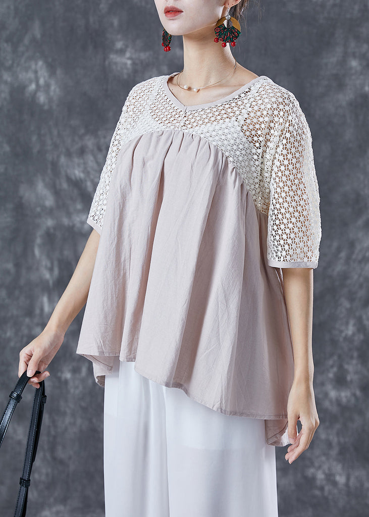 Women Beige Oversized Patchwork Cotton Shirts Summer