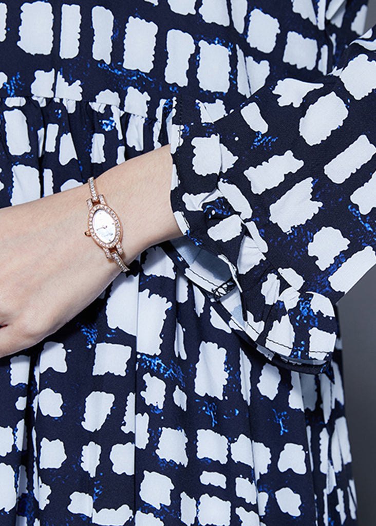 Women Black Plaid Tie Waist Chiffon Long Dress Summer LY1098