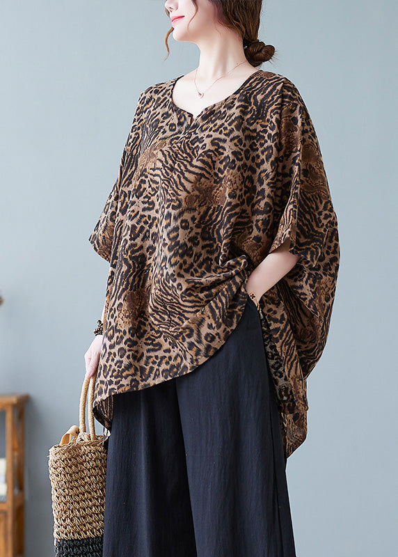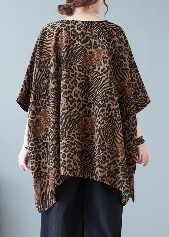 Women Leopard Yellow O-Neck Print T Shirt Batwing Sleeve AC2096