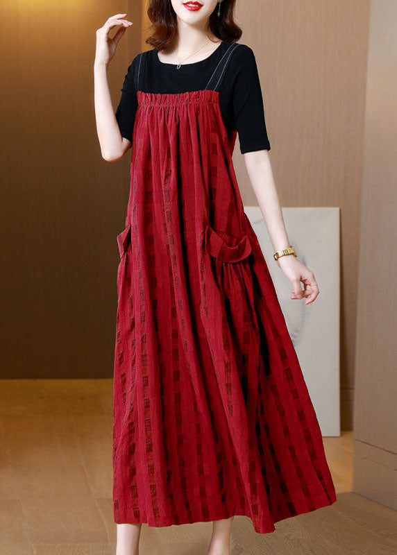 Women Red Striped Exra Large Hem Linen Strap Dress Two Pieces Set Summer AC2010
