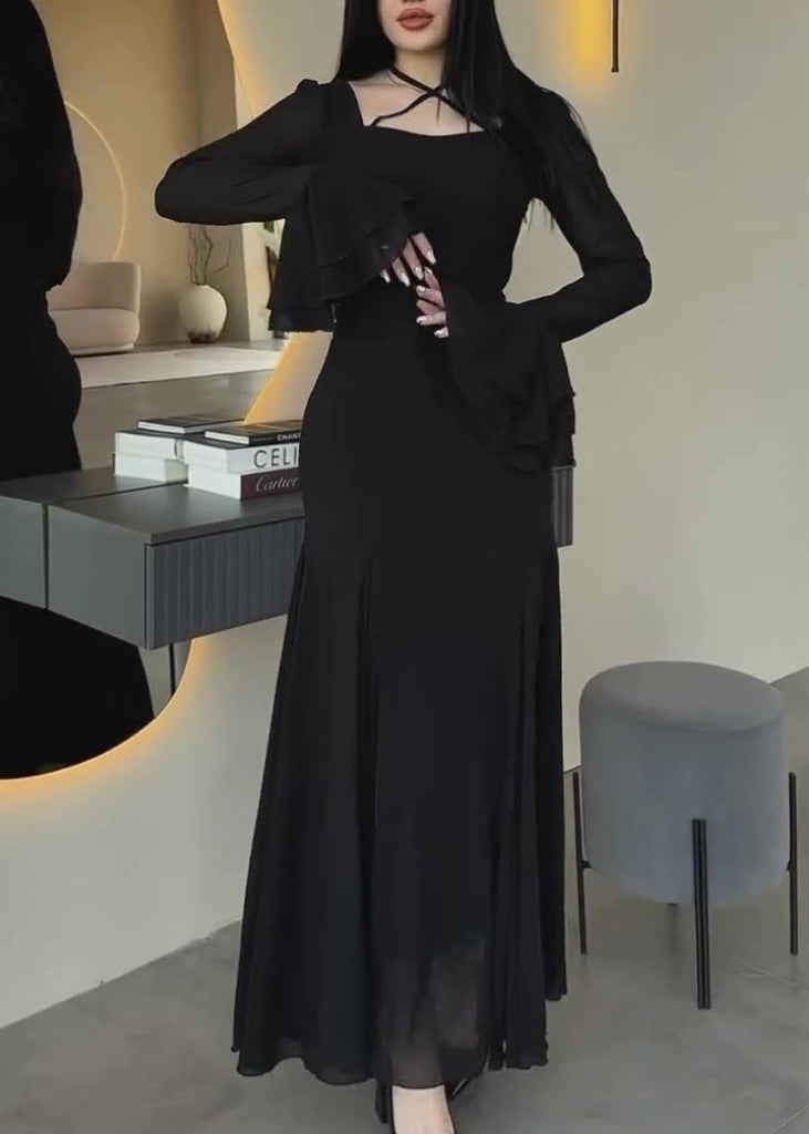 Indulge in the luxurious style of our Women Slim Fit Blue Maxi Dress. Designed with a flattering U neckline, delicate chiffon fabric, and elegant butterfly sleeves, this dress is perfect for any occasion. Experience the feeling of graceful femininity with our exclusive QL038 design.