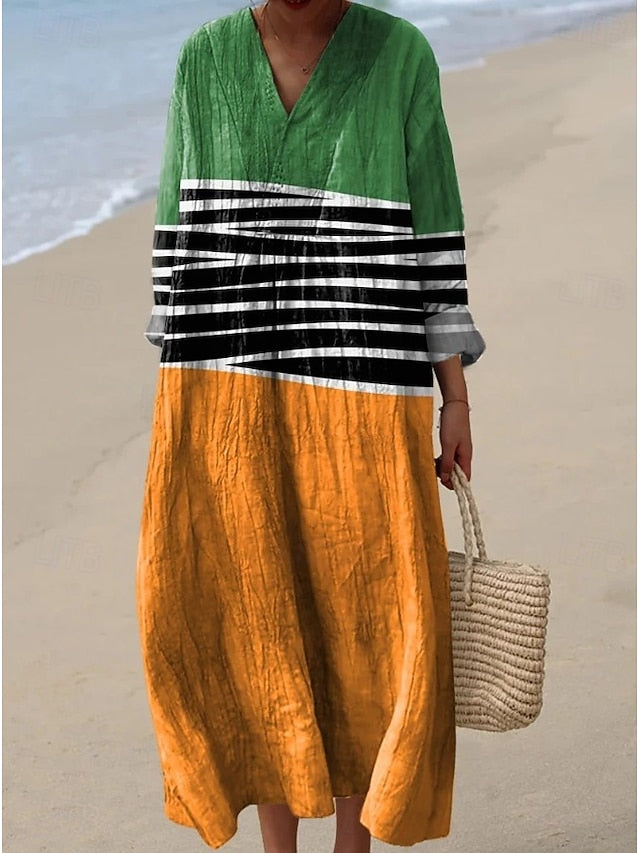 Dresses Type: Sundress, Shift Dress, Fabric: Polyester, Gender: Women's, Design: Print, Patchwork, Occasion: Going out, Beach, Style: Vacation, Casual, Fit Type: Loose Fit, Dress Length Type: Maxi Dress, Neckline: V Neck, Sleeve Length: Long Sleeve, Elasticity: Inelastic, Look After Me: Machine wash, Pattern: Graphic, Abstract, Geometric, Season: Summer, Spring,