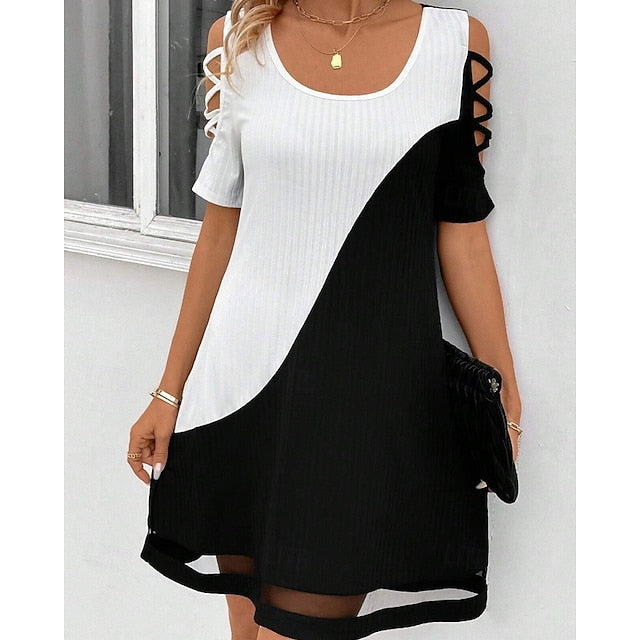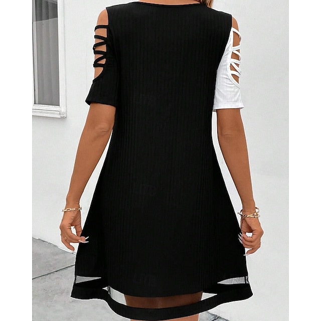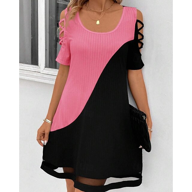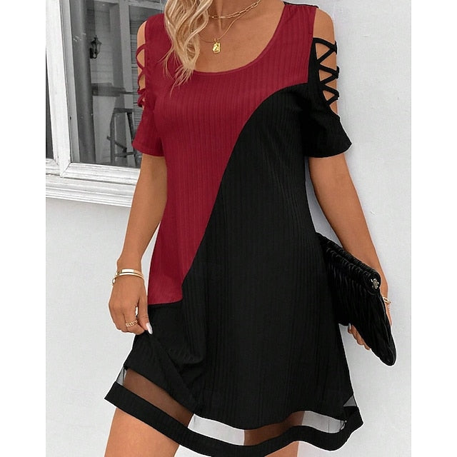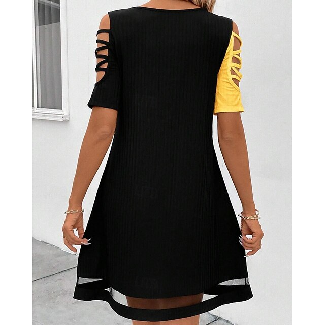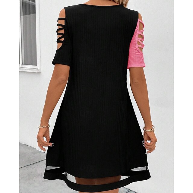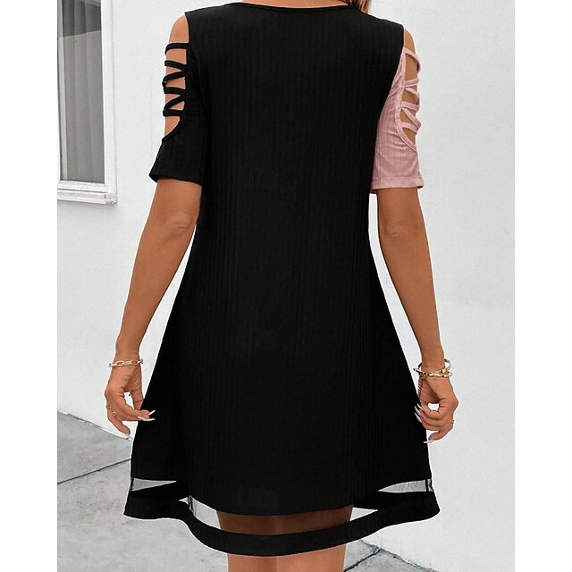 Dresses Type: Cocktail Dress, Party Dress, Fabric: Polyester, Gender: Women's, Design: Patchwork, Mesh, Occasion: Cocktail Party, Party, Style: Fashion, Modern, Fit Type: Regular Fit, Dress Length Type: Mini Dress, Neckline: U Neck, Sleeve Length: Short Sleeve, Elasticity: Stretchy, Look After Me: Hand wash, Pattern: Color Block, Season: Summer, Spring,