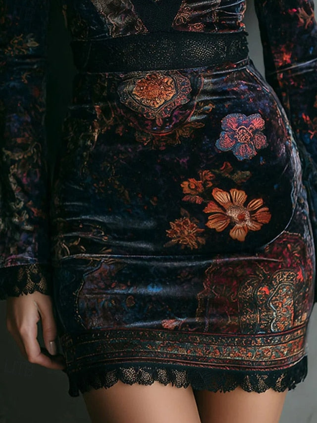 Dresses Type: Velvet Dress, Sheath Dress, Fabric: Velvet, Polyester, Gender: Women's, Design: Print, Patchwork, Lace, Occasion: Vacation, Daily, Going out, Weekend, Style: Elegant, Fit Type: Regular Fit, Dress Length Type: Mini Dress, Neckline: V Neck, Sleeve Length: Long Sleeve, Elasticity: Inelastic, Look After Me: Hand wash, Dry clean only, Machine wash, Pattern: Plain, Season: Fall, Spring,