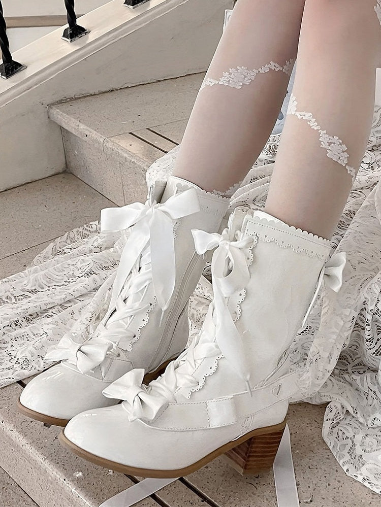 Life is too short to live without the PU White Mid-heel Polished - Boots Lolita in Sweet. Be happy. Be Content. Be Satisfied.
