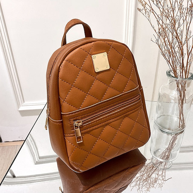 Quilted Mini Backpack with Front Zipper Pocket – Stylish and