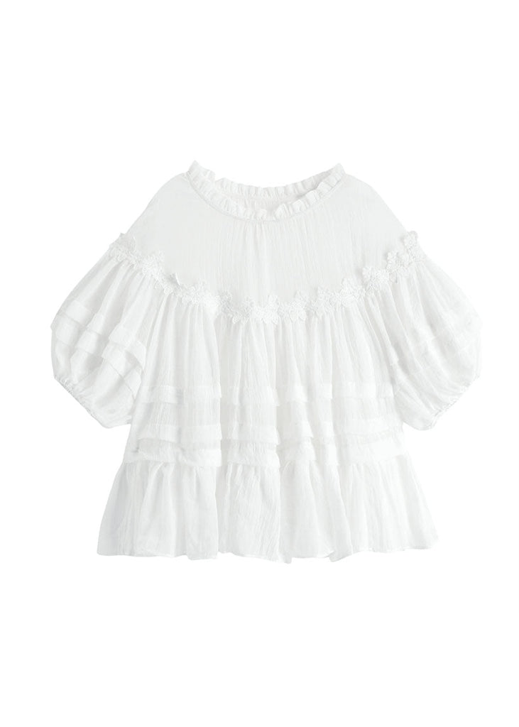 Style White Lace Ruffled Patchwork Cotton Blouses Lantern Sleeve AZ1027