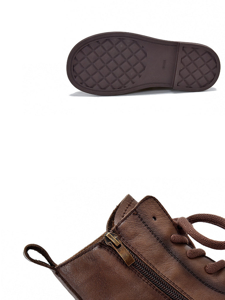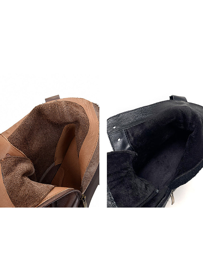 Women Genuine Leather Soft Zipper Mid Heel Martin Boots QU022