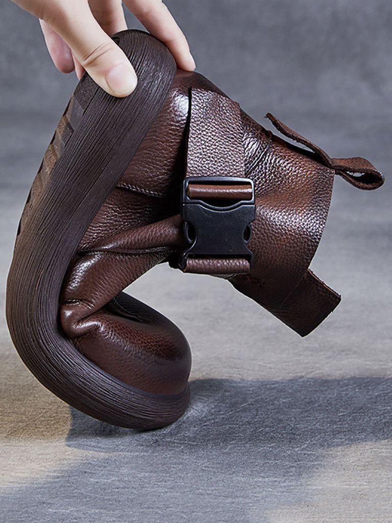 Indulge in luxury with our Women Winter Soft Leather Spliced Solid Flat Boots. Made with the finest leather and expert craftsmanship, these boots provide comfort and style. Perfect for the colder months, these boots feature a solid design and a flat heel for easy walking. Elevate your winter wardrobe today.