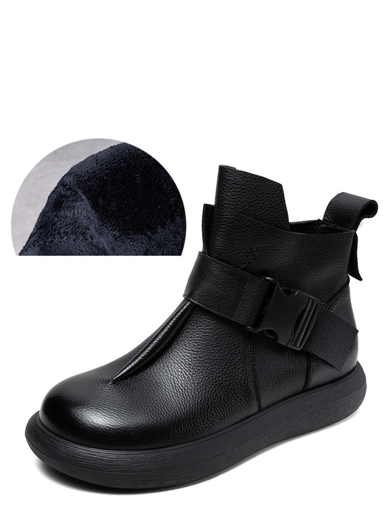 Women Winter Soft Leather Spliced Solid Flat Boots BA1025