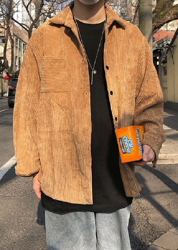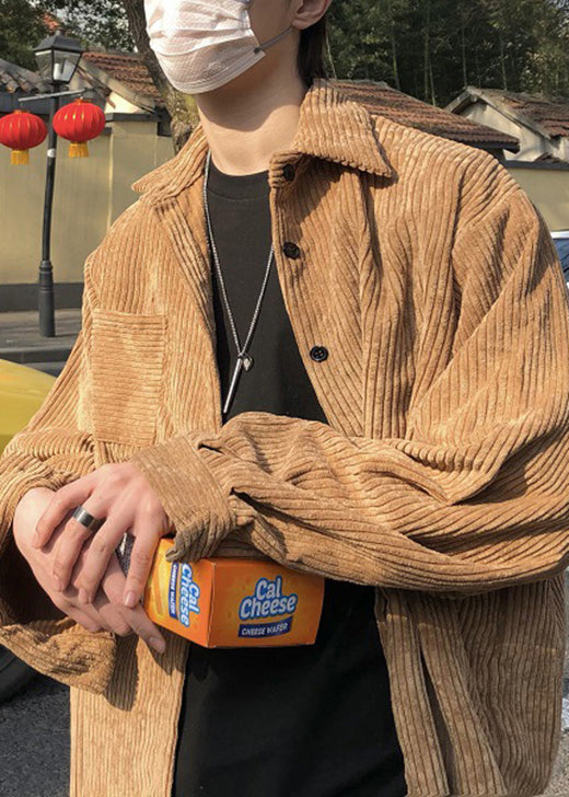 Boutique Camel Peter Pan Collar Corduroy Mens Shirts Coat Fall RO019 ABC