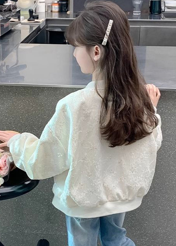Chinese Style Beige O-Neck Sequins Button Kids Coats Fall QV038