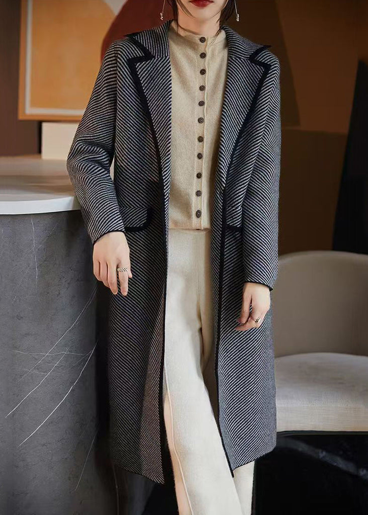 Indulge in luxury with our French Blue Striped Pockets Woolen Coats, perfect for fall. Made with premium wool, this coat exudes sophistication and elegance. Keep warm while looking effortlessly chic with its classic striped design and functional pockets. Elevate any outfit with this exclusive piece.