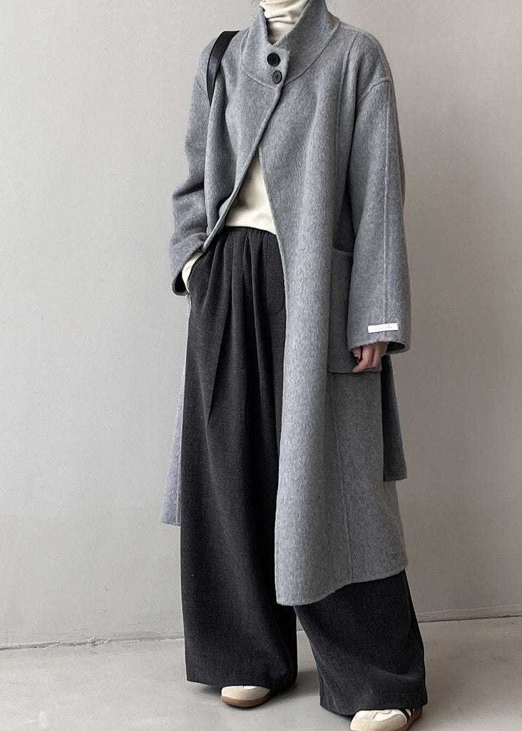 The Italian Grey Stand Collar Pockets Tie Waist Woolen Coat Fall AF1099 is evocative, to say the least, but that's why you're drawn to it in the first place.