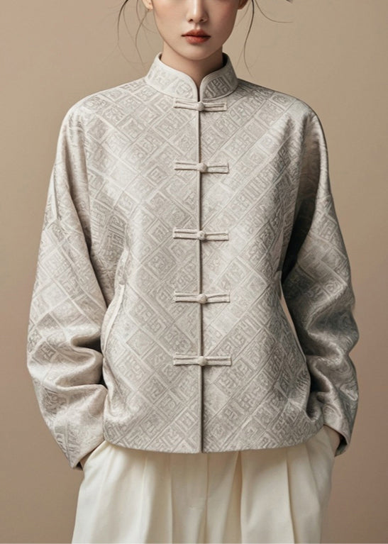 Elevate your wardrobe with our New Grey Stand Collar Print Cotton Coat Fall. This luxurious coat features a stylish stand collar and a stunning print design, crafted from high-quality cotton to keep you warm and comfortable during the fall season. Embrace sophistication and style with this premium coat.