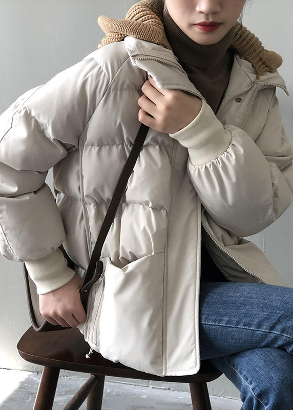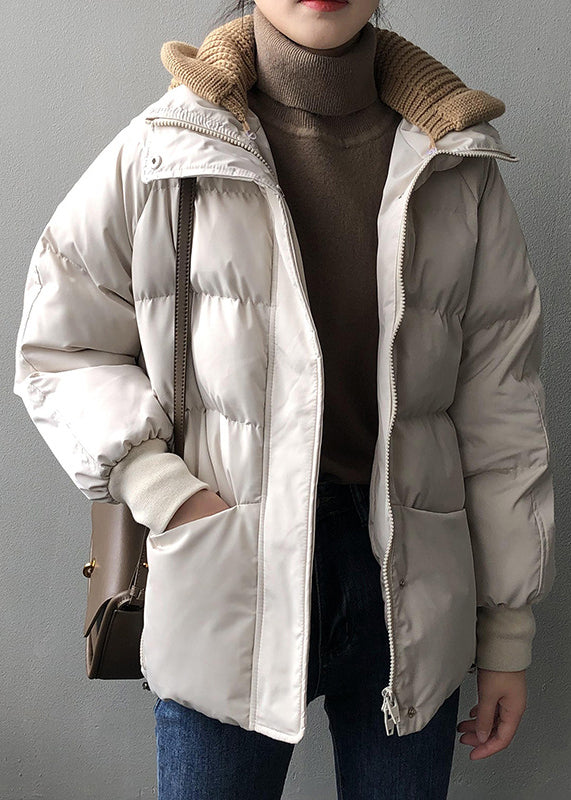 Organic Beige Hooded Pockets Fine Cotton Filled Witner Coat Winter AF1070