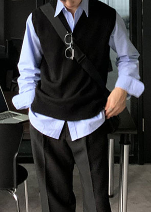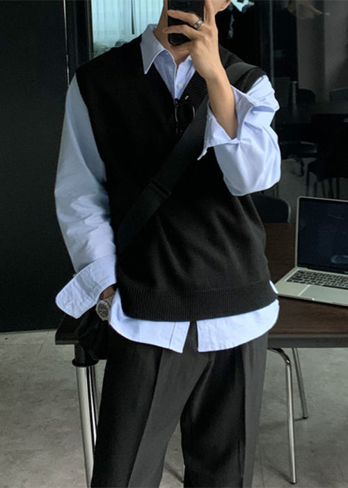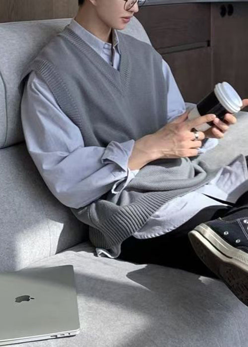 Simple Grey V Neck Cozy Knit Mens Vest Sleeveless RJ026