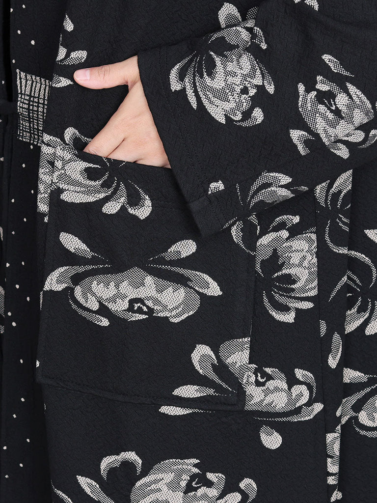 Women Artsy Autumn Flower Strap Cardigan Loose Coat AV1047