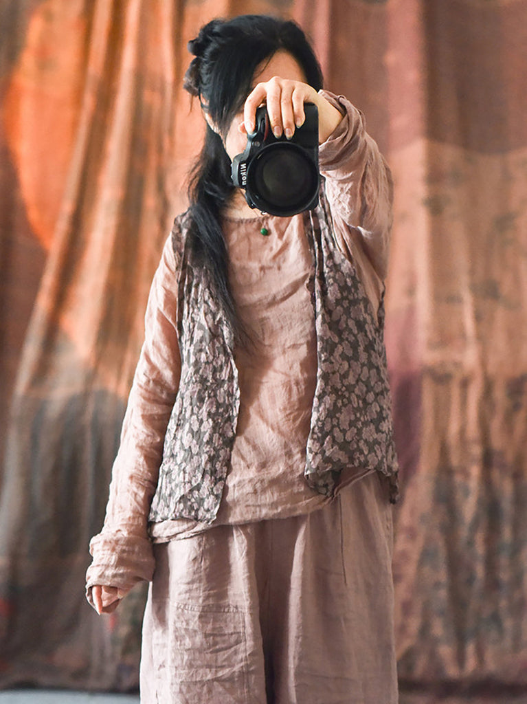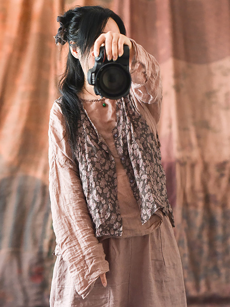 Women Artsy Floral Summer Ramie V-Neck Vest RR017