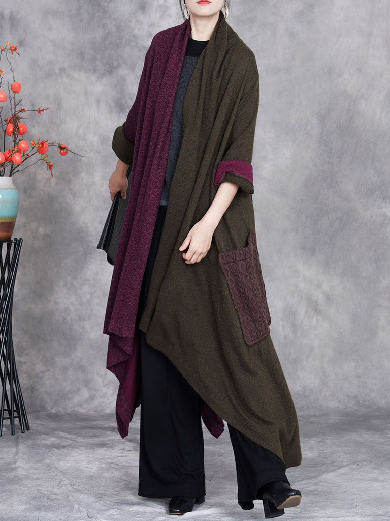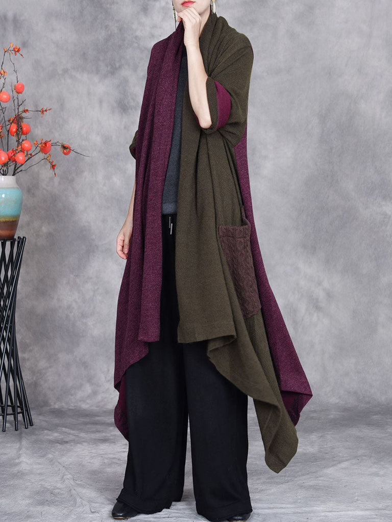 Women Autumn Artsy Irregular Colorblock V-Neck Cardigan Coat BA1057