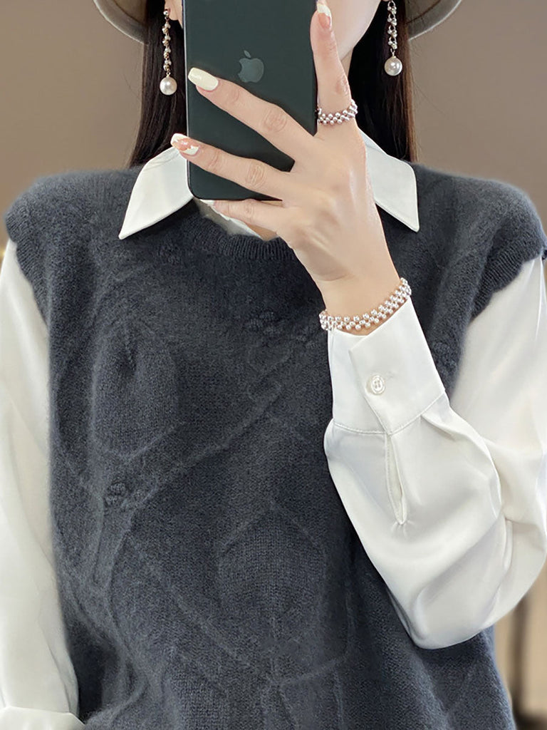 Women Casual Wool O-Neck Crochet Knit Vest AV1059