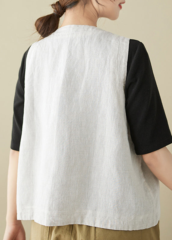 Women Khaki V Neck Horn Button Cotton Vest Sleeveless OO008