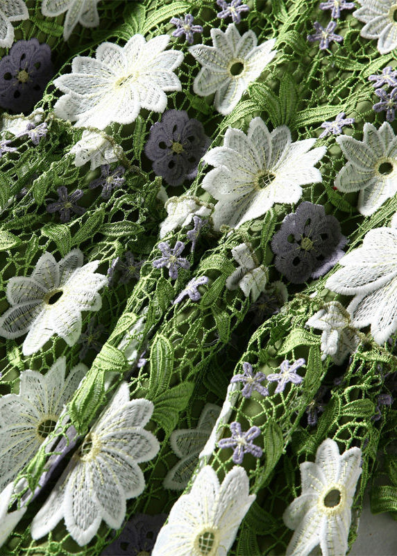Art Green V Neck Floral Embroideried Lace Dress Half Sleeve
