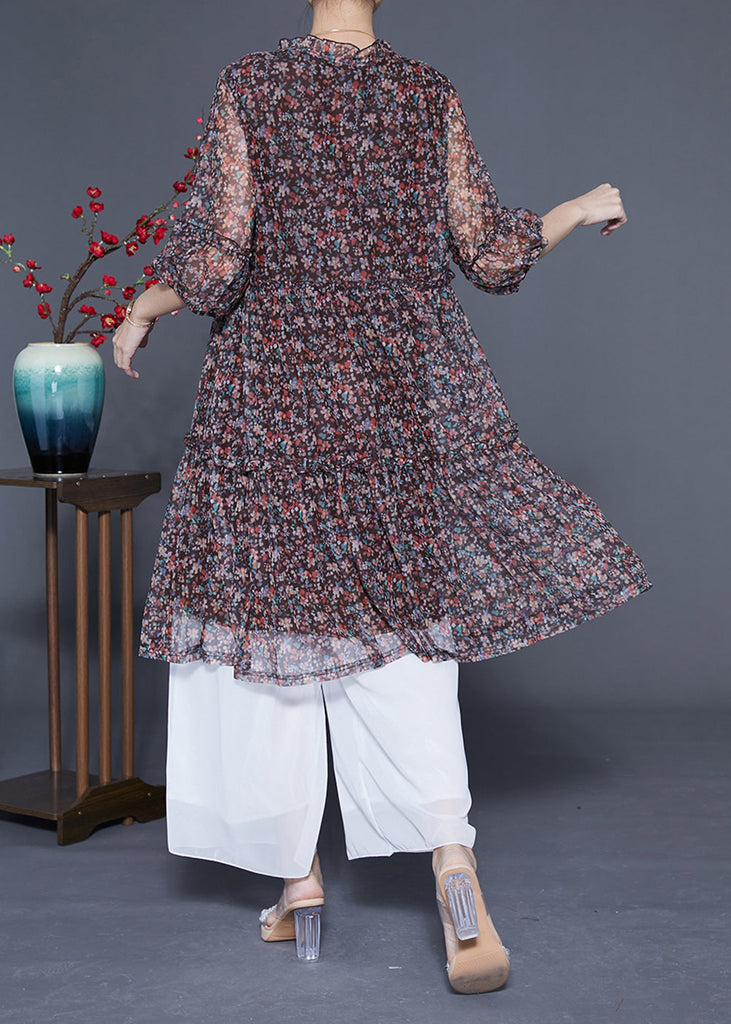 Bohemian Black Ruffled Print Lace Up Chiffon Mid Dress Summer