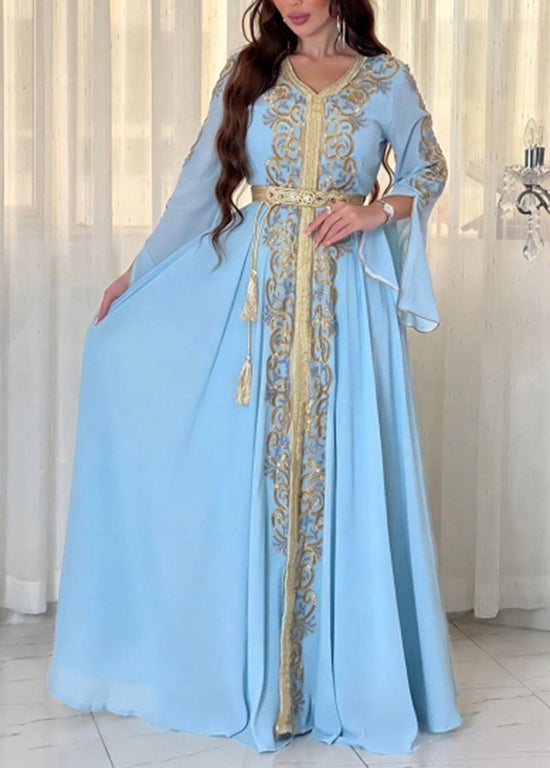 Boho Loose Mulberry Embroidered Patchwork Chiffon Maxi Dress Fall QL042