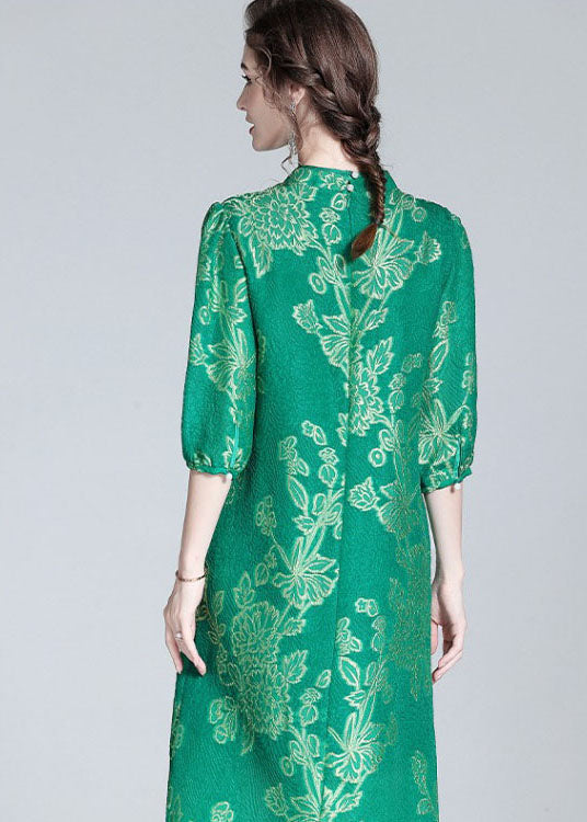 Chic Green Embroideried Patchwork Chinese Button Silk blended Dresses Summer