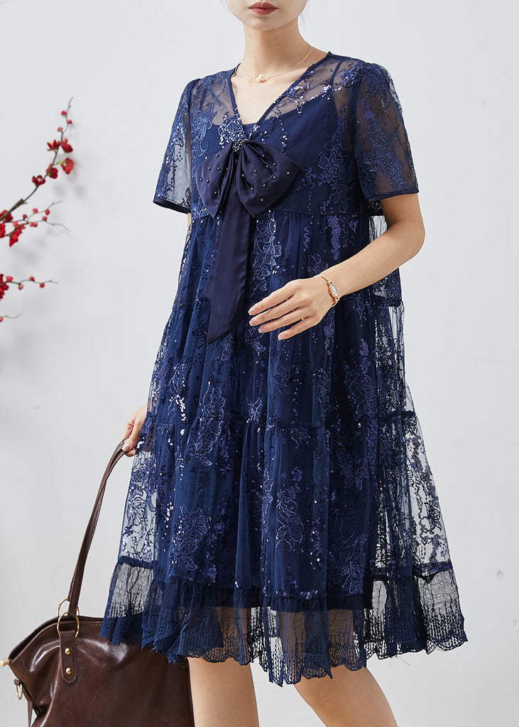 DIY Navy Sequins Embroidered Tulle Bow Dresses Summer AP1066 AM-SDM240904