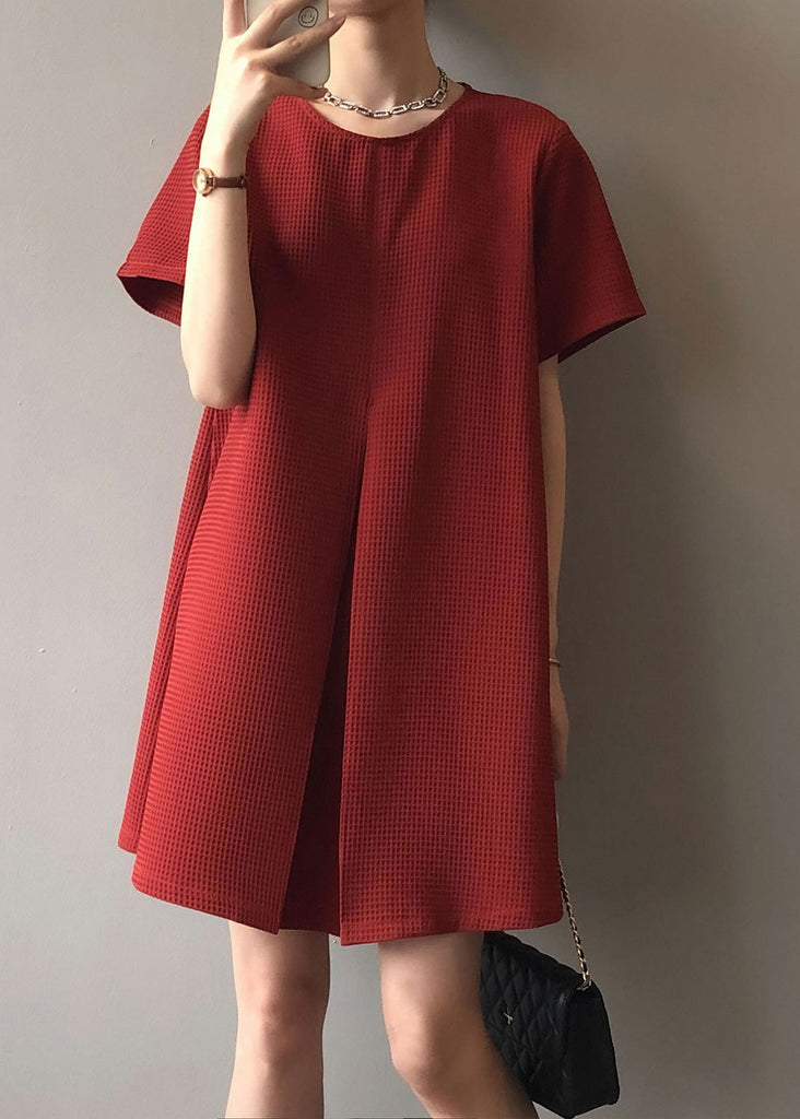 DIY New Red O Neck Cotton A Mid Dresses Summer AF1008