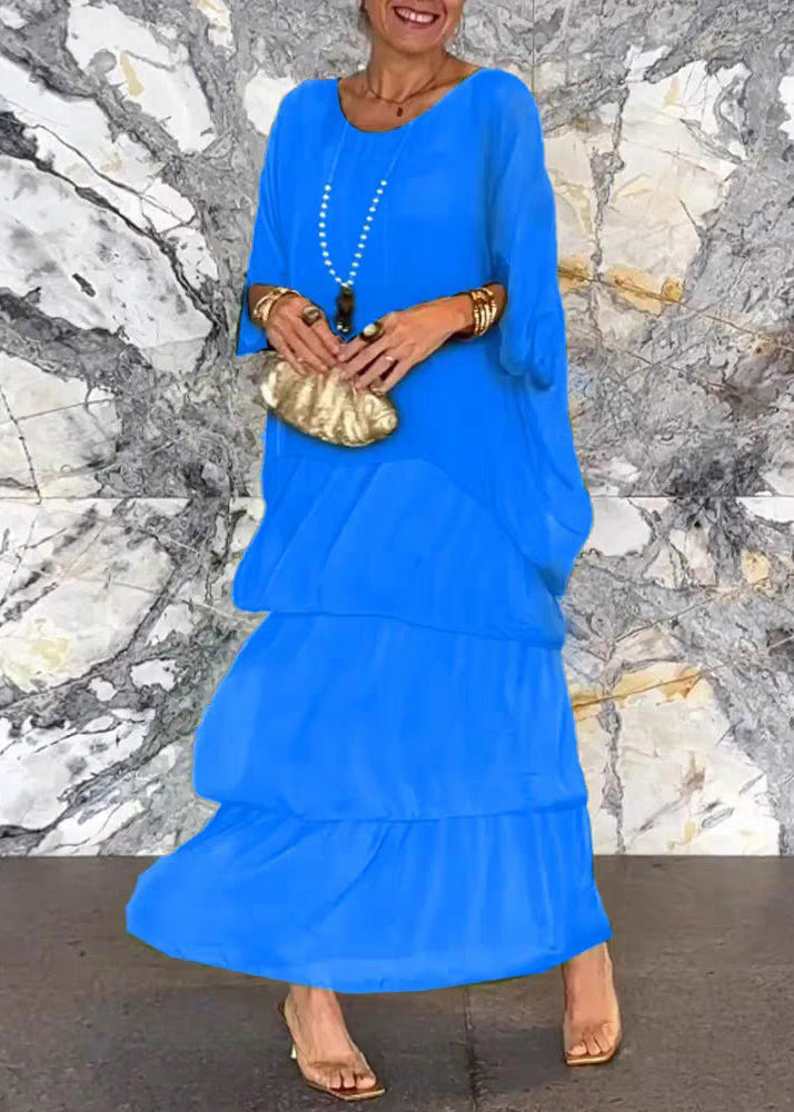 French Grey O Neck Solid Chiffon Dresses Batwing Sleeve QA022