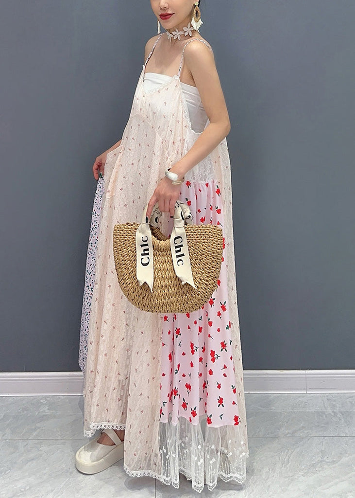 Italian Print Patchwork Tulle Spaghetti Strap Dress Sleeveless AO1055