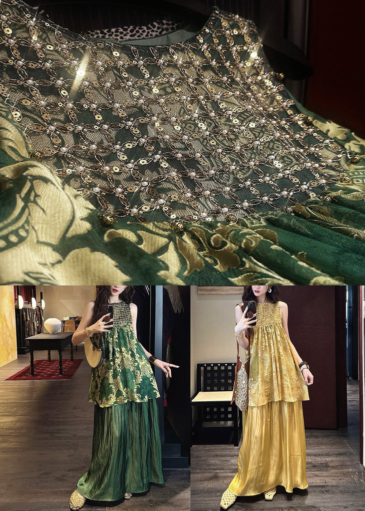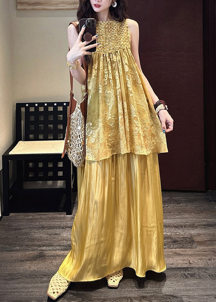 O Two Neck Silk Summer Patchwork Dress Yellow Pieces False