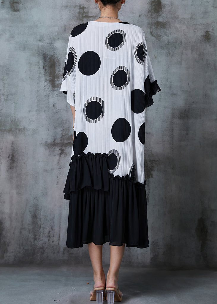 White Patchwork Chiffon Mid Dress Asymmetrical Ruffled Summer