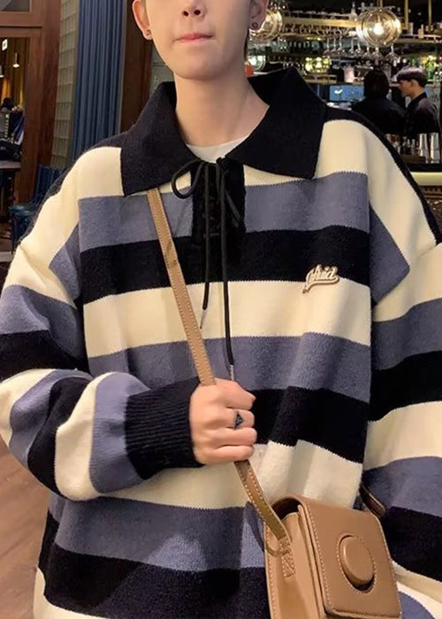 Every product is unique, just like you. If you're looking for a product that fits the mold of your life, the Cool Red Striped Peter Pan Collar Lace Up Knit Men Sweater Fall QH015 is for you.