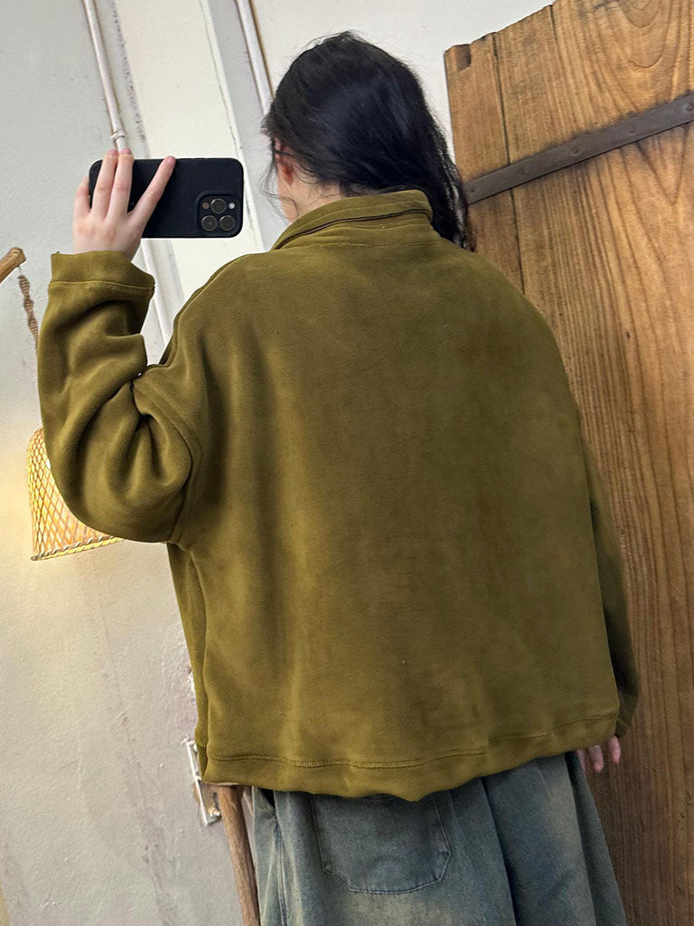 Women Autumn Retro Solid Turn-down Collar Cotton Sweatshirt BA1008