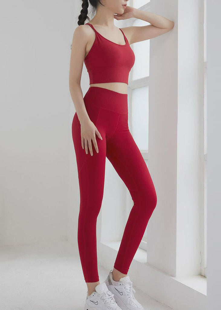 Best Red Backless Cross Strap Sports Bra And Leggings Set Suit Gym Shark Leggings TD013