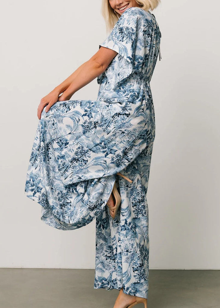 The Bohemian Blue Print Lace Up Pockets Cotton Jumpsuit Summer AU1010 is a sensational customer favorite, and we hope you like it just as much.
