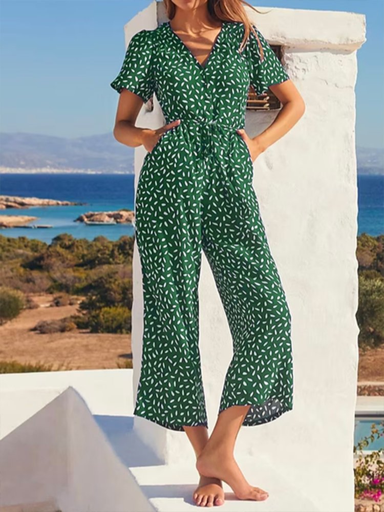 Loose V Neck Floral Vacation Jumpsuit QB109