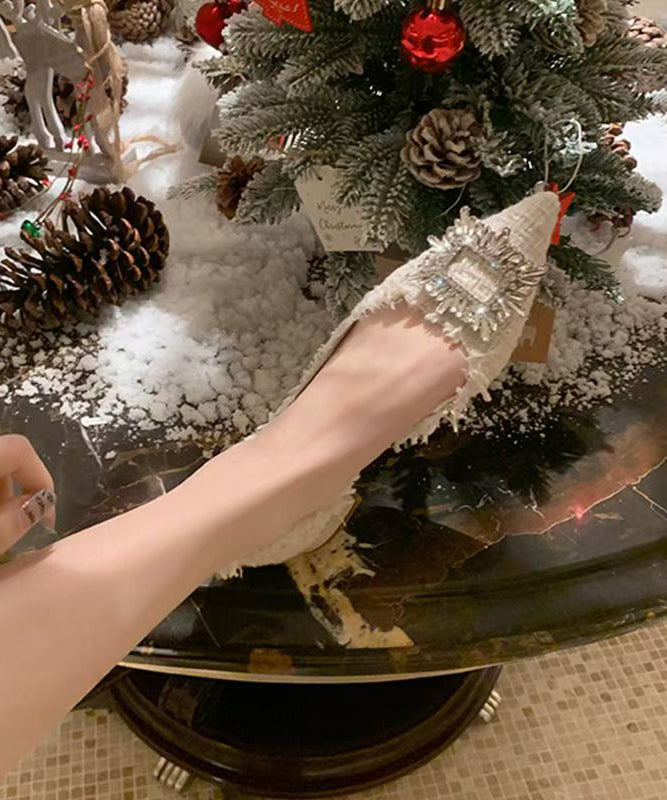 Beige French Zircon Splicing Flat Feet Shoes Pointed Toe