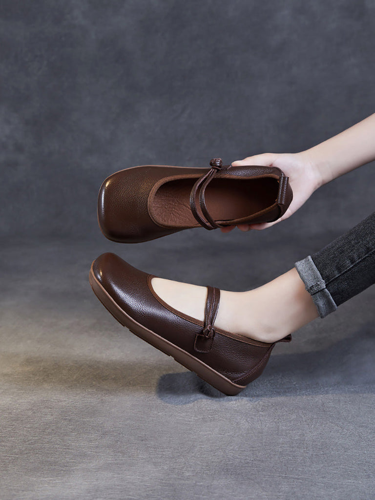 Indulge in luxury and elegance with our Women Casual Solid Leather Square Toe Flat Shoes. Crafted from premium leather, these shoes feature a modern square toe design for a sophisticated touch. The perfect blend of style and comfort for any occasion. Elevate your shoe game with our exclusive collection.