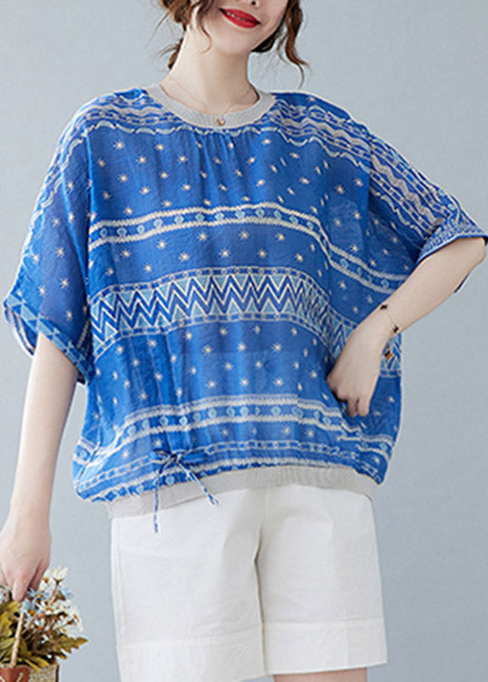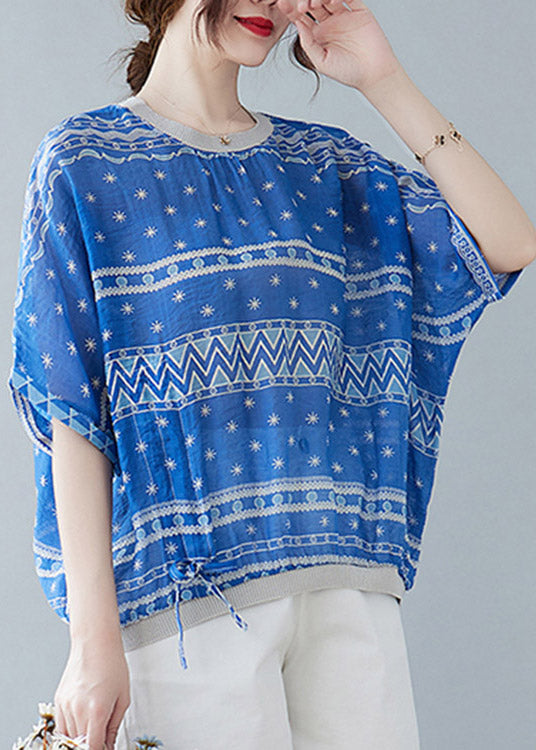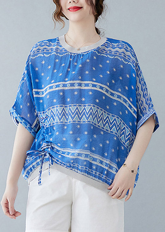 Blue Tie Waist T Shirts Short Sleeve LY1526