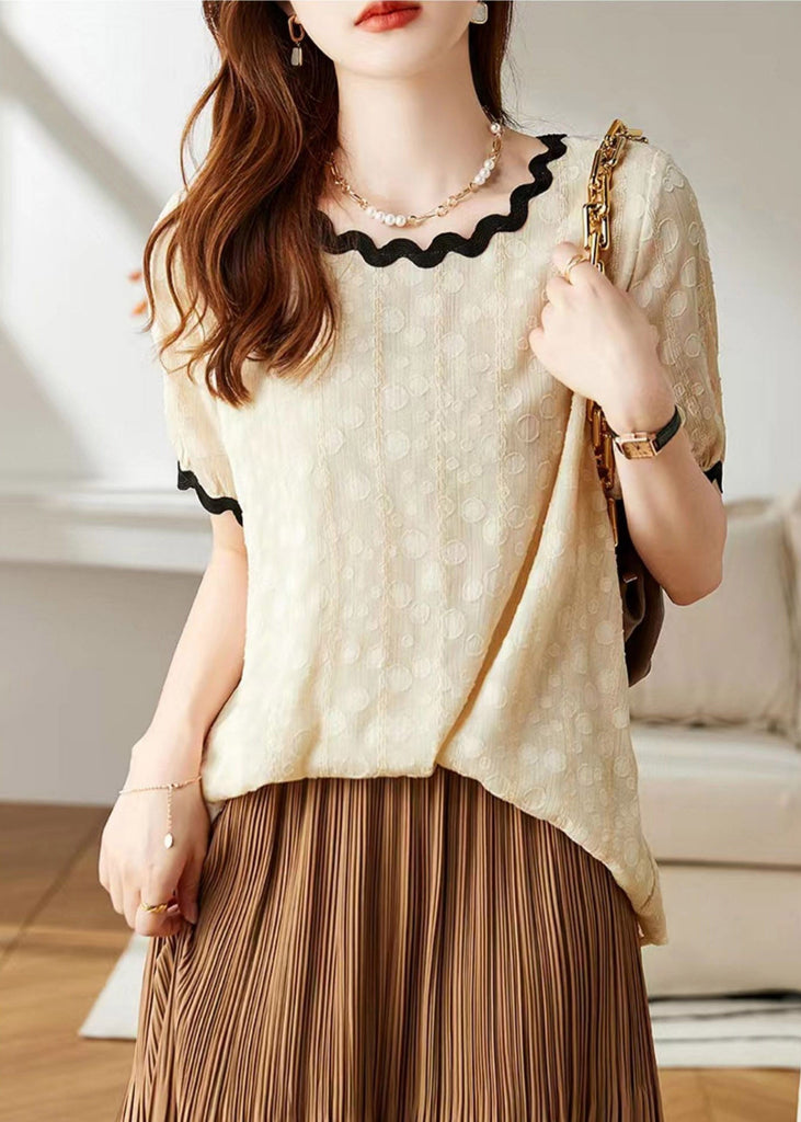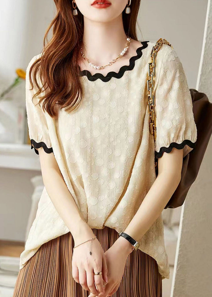 Bohemian Beige O-Neck Chiffon T Shirts Short Sleeve LY1525