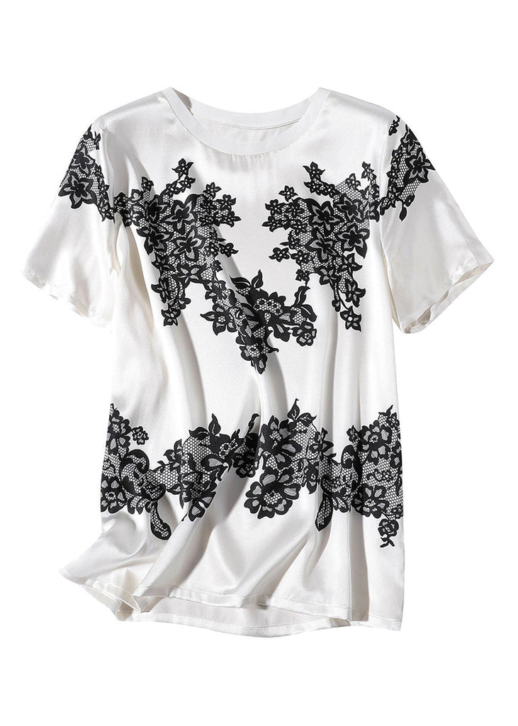 Elegant White O-Neck Print T Shirt Short Sleeve LY1044