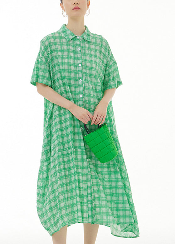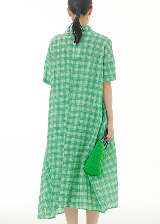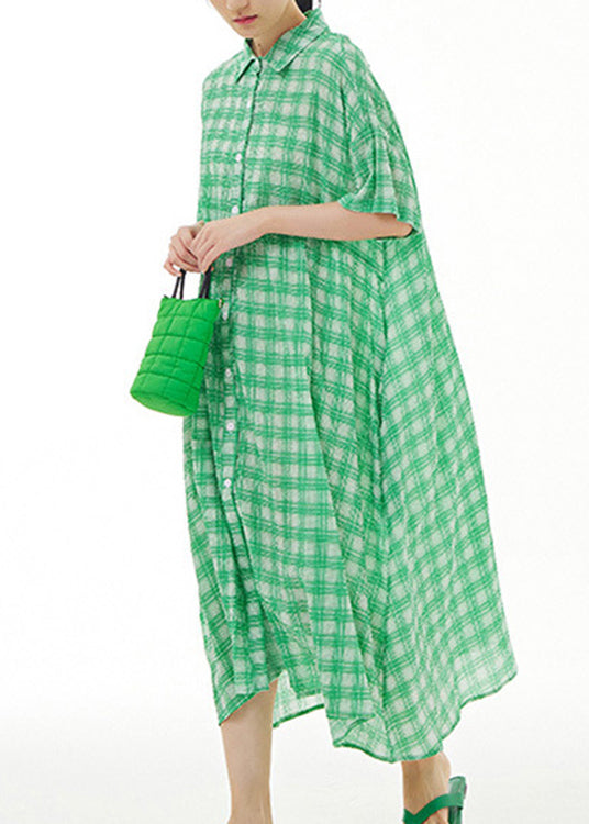 Green Peter Pan Collar Cotton Long Dresses Short Sleeve