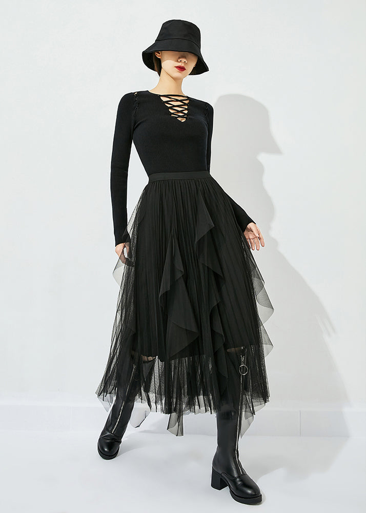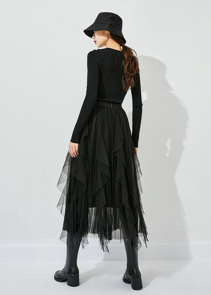 Black Tulle Holiday A Line Skirts High Waist Oversized Summer
