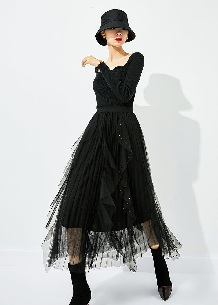 Every product is unique, just like you. If you're looking for a product that fits the mold of your life, the Classy Black Elastic Waist Ruffles Nail Bead Tulle Beach Skirts Summer LY0854 is for you.